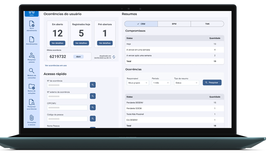 Gestão de Workflow: Roteamento automático de demandas (ACD), respostas padronizadas e integração nativa com CRM para abertura e vinculação de tickets.